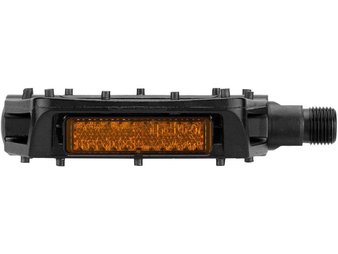 Die MTB Plattformpedale von 3min19sec sind ideal für den Mountainbike-Einsatz: stabil, langlebig und mit viel Grip. Ihre große, trittfeste Plattform (100 x 109 mm) wurde mit Pins versehen, die Deinem Fuß beim Trailriding Halt bieten. Die robuste Stahl-Achse ist doppelt gelagert – mit einem Kugel- und einem DU Gleitlager. Für Sicherheit im Straßenverkehr und bei ungünstigen Lichtverhältnissen sorgen die integrierten Reflektoren. So bietet Dir das MTB Plattformpedal offroad gute Dienste und ist auch noch alltagstauglich.
