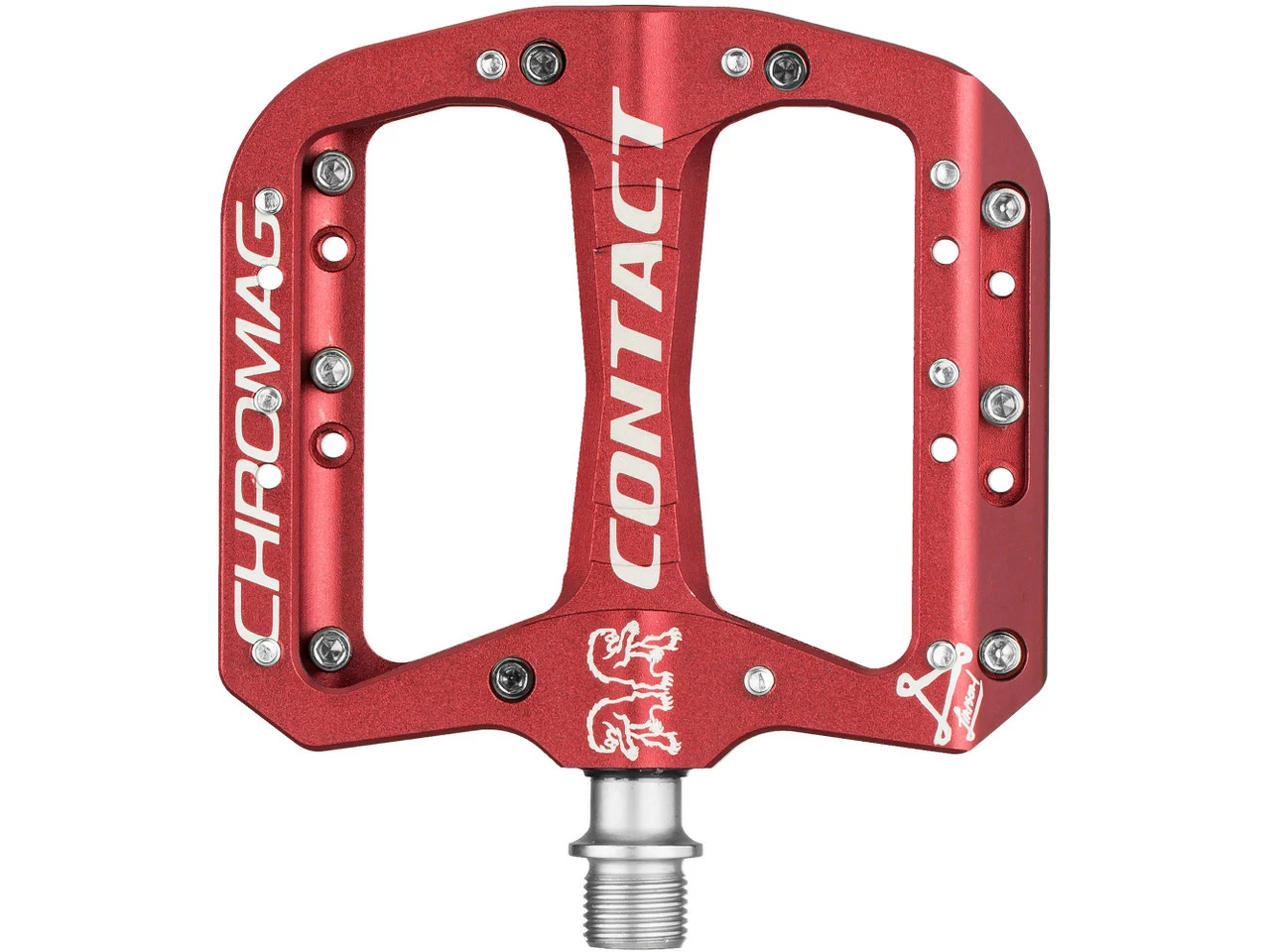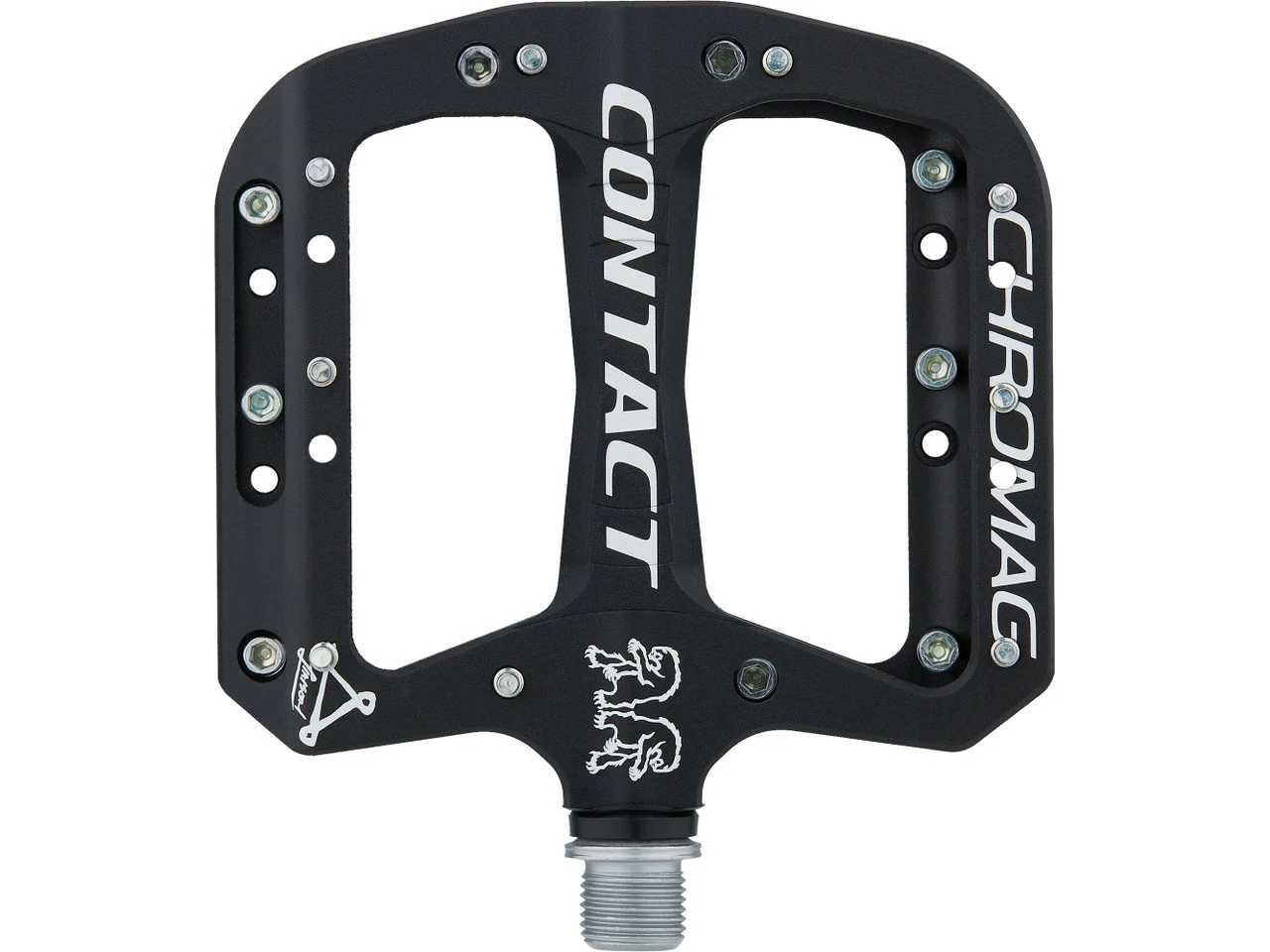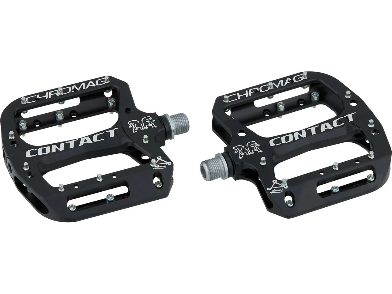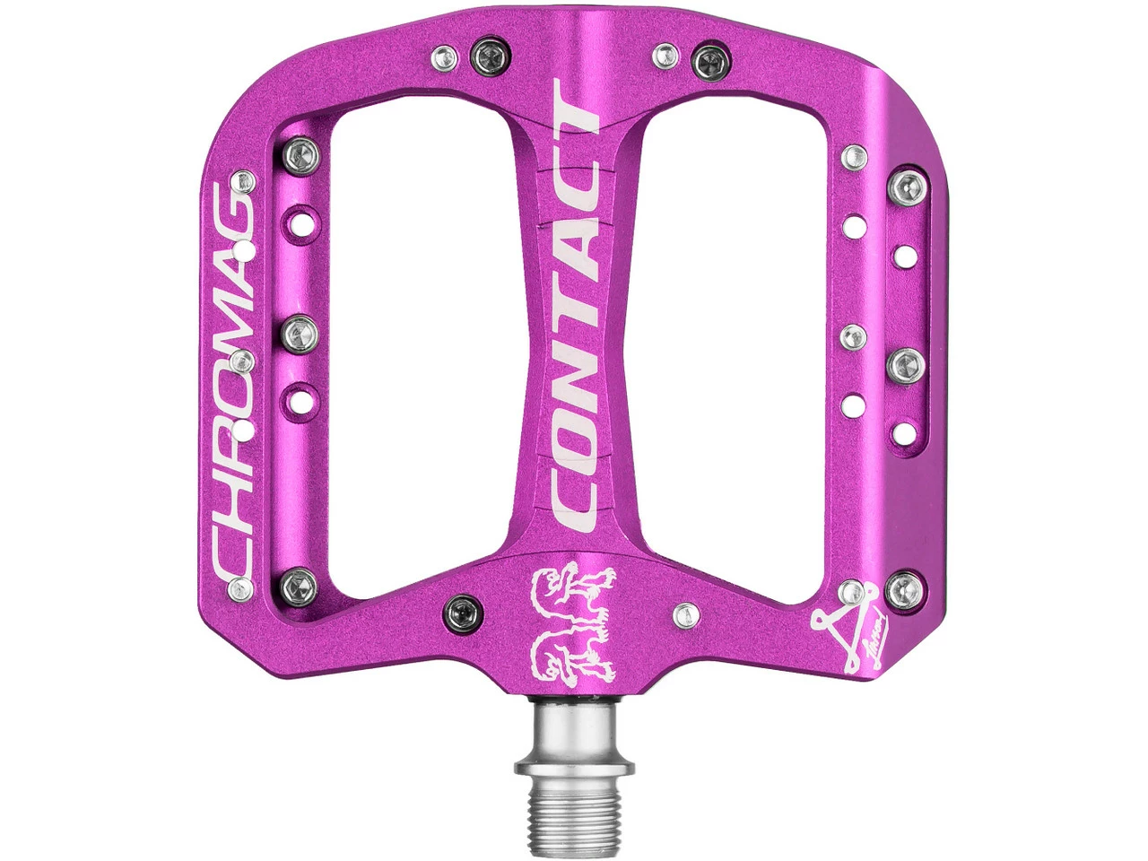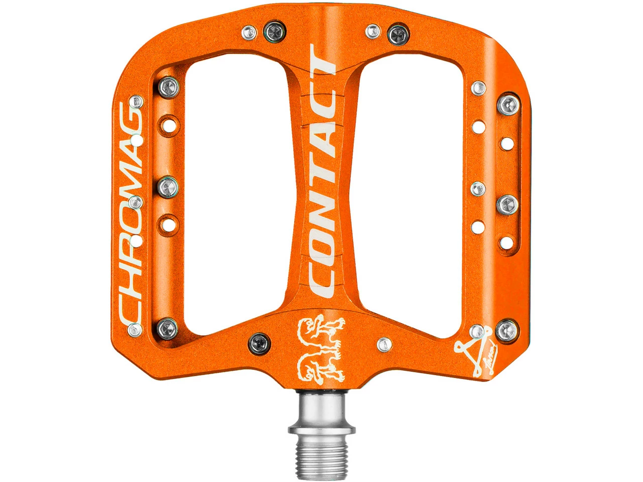 Spezifikationen:Einsatzbereich:MTBAusführung:PlattformpedaleTechnische Daten:Material Pedalkörper:AluminiumMaterial Achse:StahlBauhöhe:13 mm (ohne Pinhöhe)Aufstandsfläche (Breite x Länge):105 x 110 mmAnzahl Pins:24Features:CNC-bearbeitetniedriges, konkaves ProfilDesign by Brandon SemenukHerstellernummern:black:181-001-01red:181-001-04gunmetal:181-001-15bronze:181-001-16dark blue:181-001-09purple:181-001-10orange:181-001-16Lieferumfang:1 Paar Pedale Chromag Contact