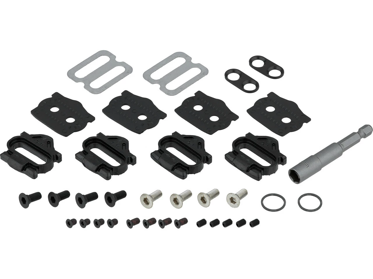 Lieferumfang:1 Paar Klickpedale HT DH RACE X31 Paar Cleats X1F1 Paar Cleats X14 x Distanzplatte Kunststoff2 x Distanzplatte Metall2 x Unterlegscheibe8 x Schraube lang8 x Schraube kurz2 x O-Ring5 x Ersatzpin1 x Sechskantschlüssel