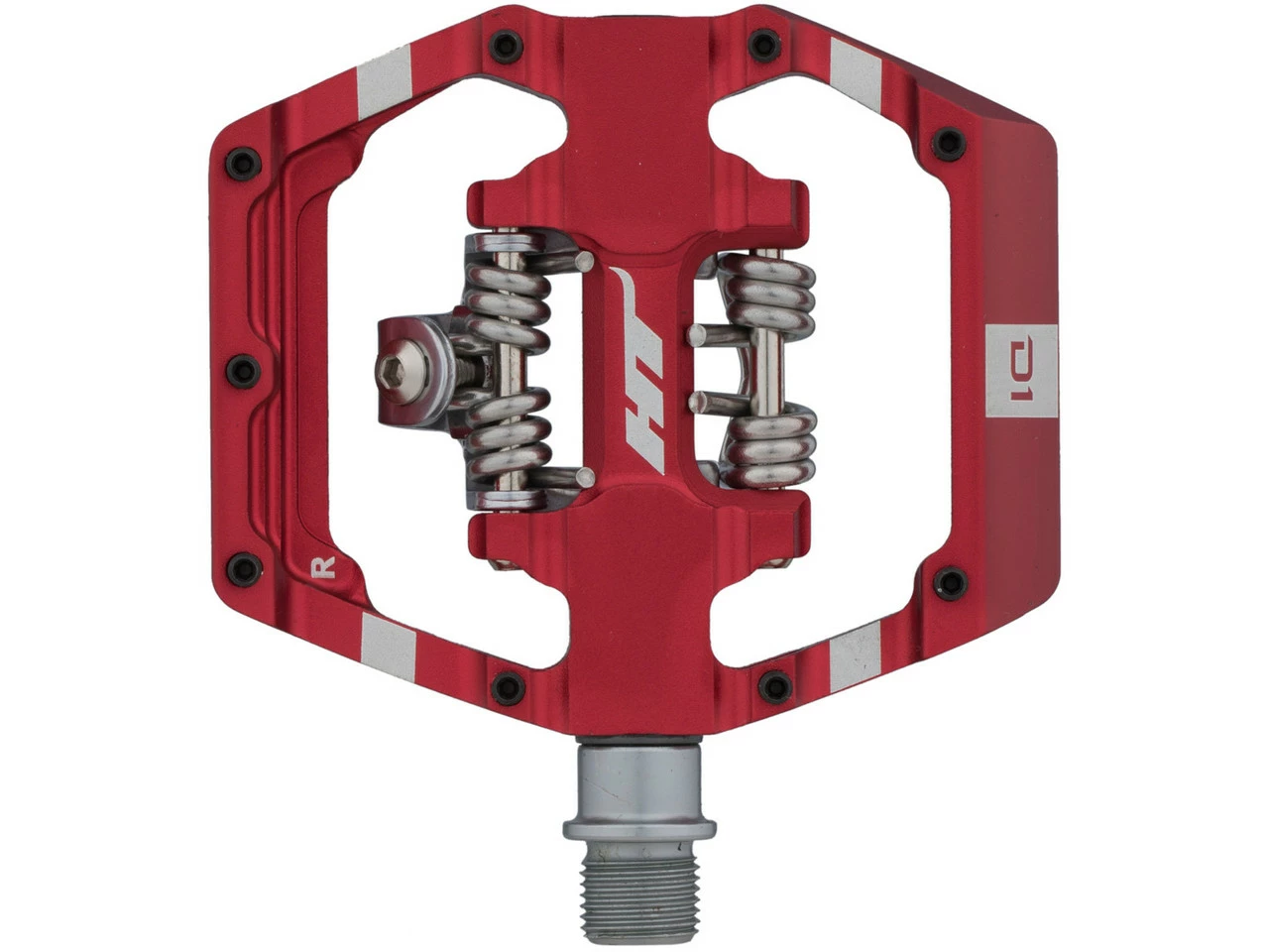Spezifikationen:Einsatzbereich:Trail, All Mountain, E-BikeAusführung:Hybridpedale (eine Seite Klick, eine Seite Plattform)Pedalsystem:HTMontage Schuhplatte:2-LochTechnische Daten:Material Pedalkörper:Aluminium (6061)Material Achse:Stahl (scm435 CrMo)Lagerung:gedichtet, IGUS BuchsenBauhöhe:14 mmMaße [L x B]:80 x 90 mmBewegungsfreiheit:4°Auslösewinkel:13°Empfohlene Schuhplatten:X1, X1FAnzahl Pins:14Features:High End Dual Flat Pedalschmutzabweisendeinfacher Ein- und AusstiegAuslösekraft einstellbarKörper stranggepresst, Achse und Körper CNC-gefertigtEVO+ Systemaustauschbare Pins (9 auf flacher Seite, 5 auf Klick-Seite)Herstellernummern:black:HT-D1-001red:HT-D1-(023)Lieferumfang:1 Paar Hybridpedale HT DUO D11 Paar Cleats HTinkl. Pins
