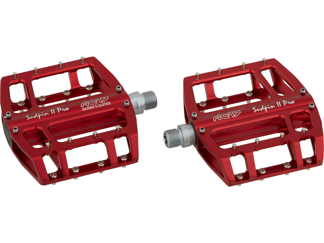 Bei den Sudpin II Pro wird der CNC Körper durch zwei Konuslager ergänzt, was den Preis deutlich drückt aber nicht notwendigerweise das Pedal verschlechtert. Das Sudpin Pro ist 4 mm höher als das S-Pro was sich auch leicht im Gewicht widerspiegelt. Für die, die richtig üben wollen genau das Richtige. Neu ist auch, dass das Sudpin Pro Pedal in rot lieferbar ist. Auswechselbare Pins sind im Lieferumfang enthalten
