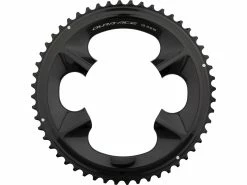 Dieses Kettenblatt ist ein Ersatzteil für die Dura-Ace FC-R9200 2×12-fach-Rennradkurbel von Shimano. Es ist genauso mit dem Modell FC-R9200-P mit Powermeter kompatibel. Das Kettenblatt hat vier asymmetrisch angeordnete Arme und einen Lochkreisdurchmesser von 110 mm. Die Ausführungen 54, 52 und 50 Zähne bestehen aus einem Aluminium-Carbon-Verbund, die anderen Versionen rein aus Aluminium. Alle Ausführungen weisen ein Eloxal-Finish auf.