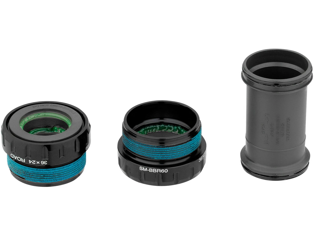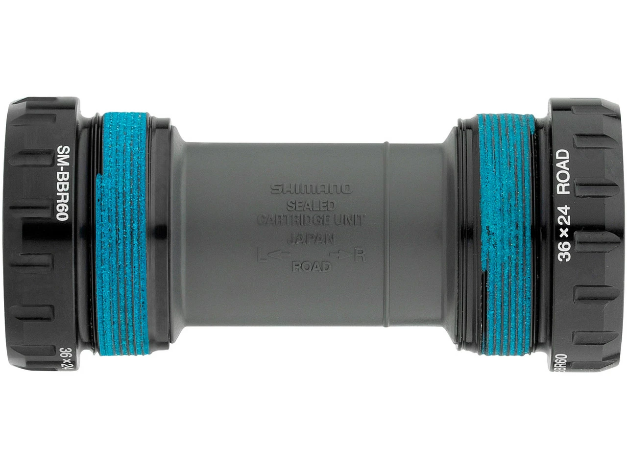 Das Shimano SM-BBR60 ist ein Innenlager vom Typ BSA oder ITA, welches für Ultegra, 105, GRX, FC-CX70 und andere Hollowtech II-kompatible Kurbeln mit 24 mm Achse empfohlen wird. Es überzeugt durch verbesserten Leichtlauf und geringes Gewicht, ist dabei aber genauso beständig wie sein Vorgänger. Tretlagergehäuse mit BSA-Gewinde sind 68 mm breit, ITA-Gehäuse sind 70 mm breit.