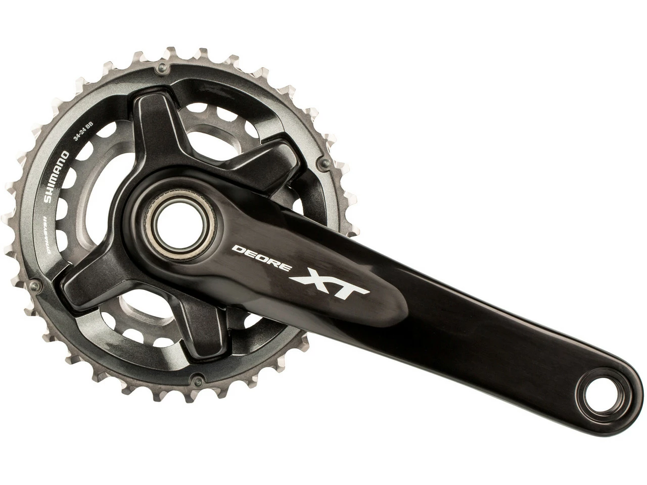 Die Shimano XT FC-M8000-2 Kurbelgarnitur mit der Abstufung 24-34, 26-36 oder 28-38 Zähne zeichnet sich durch besondere Antriebseffizienz und wettkampftaugliche Performance aus. Es handelt sich um eine von drei Kurbeloptionen im XT 11-fach Schaltsystem, das nach dem „Rider Tuned“ Prinzip für jeden Fahrertyp und jedes Gelände das passende Set-up zur Verfügung stellt. Die FC-M8000-2 Aluminium-Kurbel überzeugt durch präzises Schalten sowie durch Robustheit und geringes Gewicht. Sie ist im Hinblick auf Übersetzung und gleichmäßigen Tretrhythmus optimal abgestimmt (Dyna-Sys11 Technologie). Das seit vielen Jahren bewährte Hollowtech II Design mit fest verbundener 24 mm Achse sorgt zusätzlich für Stabilität.