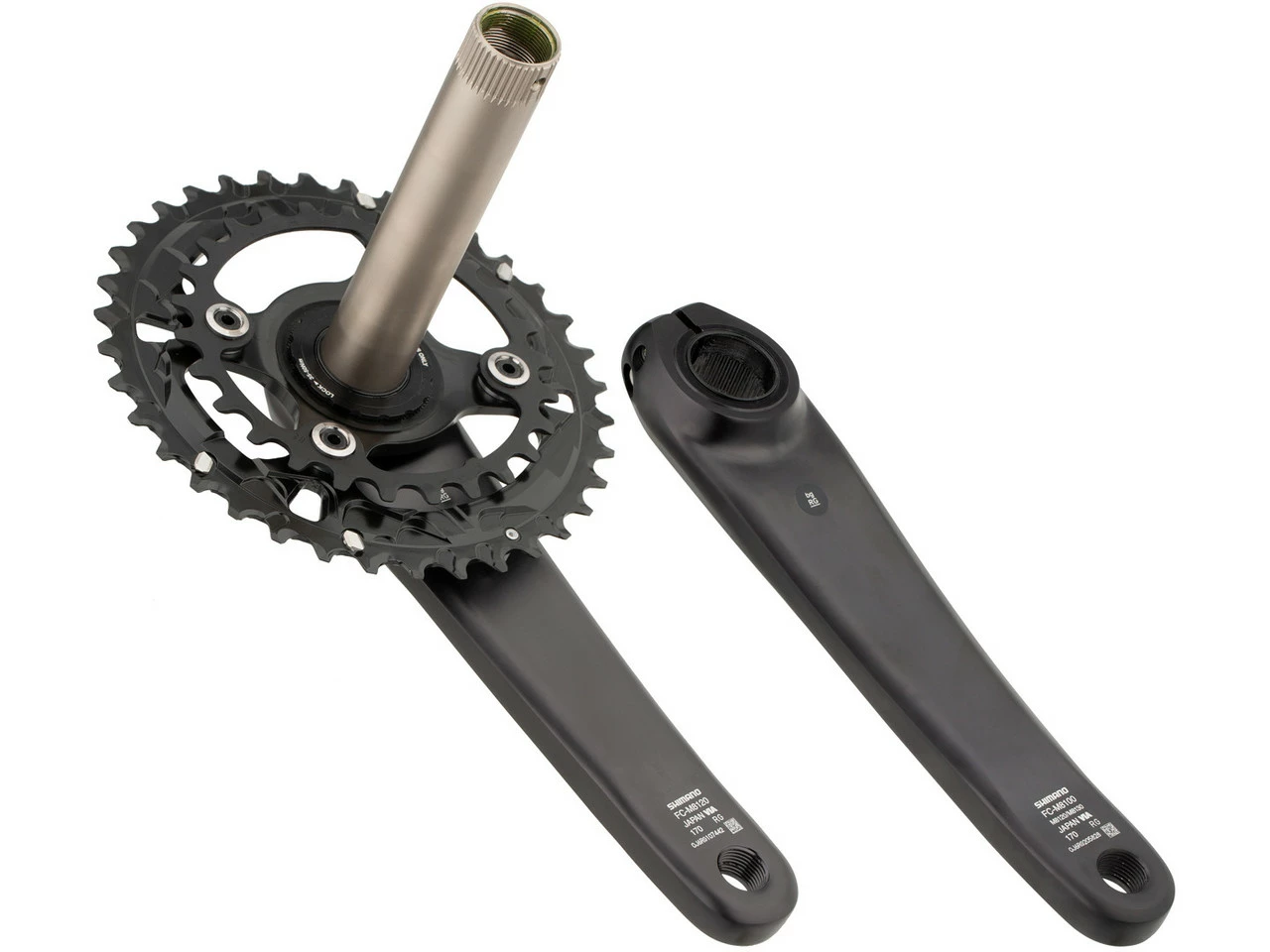 Schnellspanner: 141 mmSteckachse: 148 mmSchaltgriff:SL-M9100, SL-M8100, SL-M7100Umwerfer:FD-M9100, FD-M8100, FD-M7100Innenlager:SM-BB93, SM-BB80, BB-MT801, BB-MT800, SM-BB52, BB-MT501, BB-MT500, SM-BB94-41A, BB-MT800-PA, BB-MT500-PAKette:CN-M9100, CN-M8100, CN-M7100, CN-M6100Hinweis:Mit SM-CRM85 Kettenblatt auch 1-fach fahrbar (Kettenlinie 55 mm)Features:geschmeidigere Fahrt auf rauem Terrainextrabreite Abstufung vornesteifes und leichtes Design kommt aggressivem Trailriding entgegenhohlgeschmiedete Kurbelarme maximieren Powertransfer und minimieren das Gewichtleicht zu wechselnde Kettenblätter durch Direktmontage3 mm weiter außen liegende KettenlinieKurbelarme eloxiertgroßes Kettenblatt aus Aluminium (eloxiert), kleines Kettenblatt aus Stahl (lackiert)Technologie:Hollowtech II