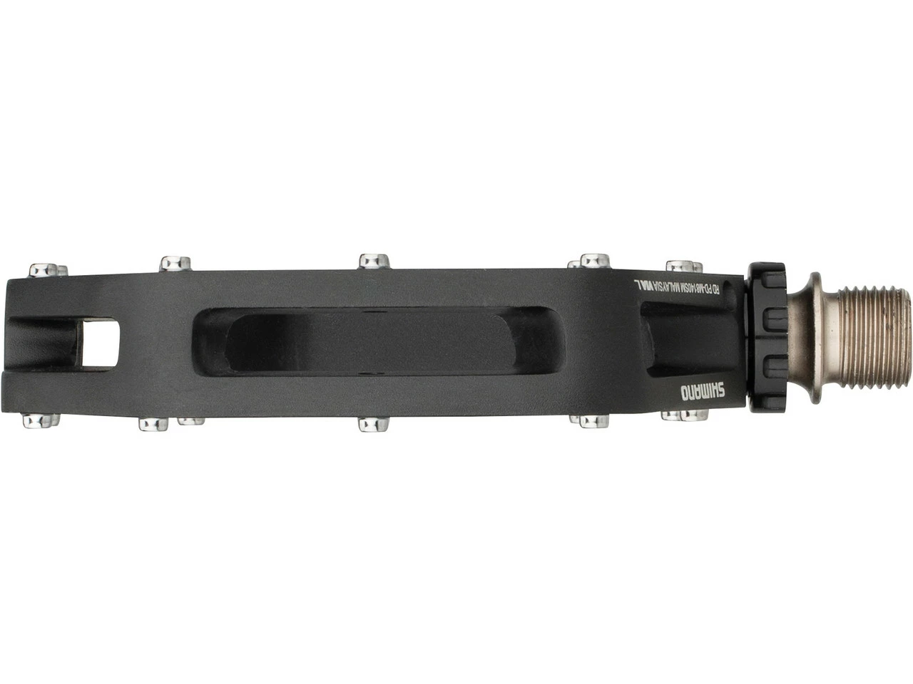 Spezifikationen:Einsatzbereich:Enduro, All MountainAusführung:PlattformpedaleTechnische Daten:Material Pedalkörper:AluminiumMaterial Achse:Stahl (CrMo)Lagerung:KompaktlagerBauhöhe:9,1 mmMaße [L x B]:10,0 x 10,5 cm (S/M), 11,0 x 11,5 cm (M/L)Anzahl Pins:20Features:Serie: Deore XT M8100Grip-optimiert für aggressives Trailridingoptimierte Pinpositionbreiter Pedalkörper für mehr Stabilität und Komfortbreite Platform und austauschbare Pins (10 pro Seite) gewährleisten sicheren Haltkonkave Plattform mit optimierten Größenoptionen für unterschiedliche Q-FaktorenPatronenachsegedichteter Mechanismuslackiertoptionaler Reflektor SM-PD67Ausführungen:S/M: