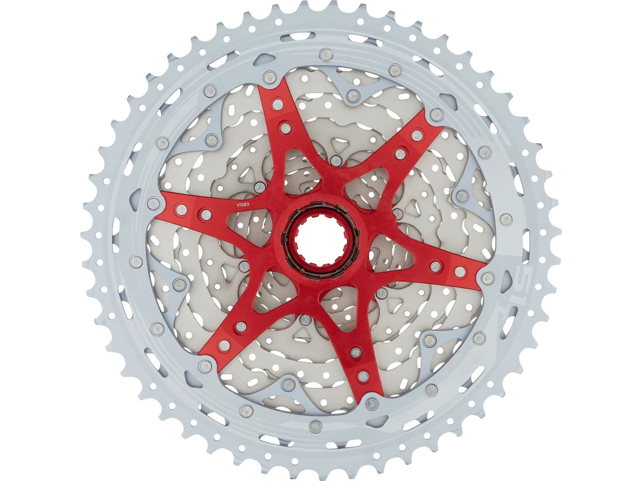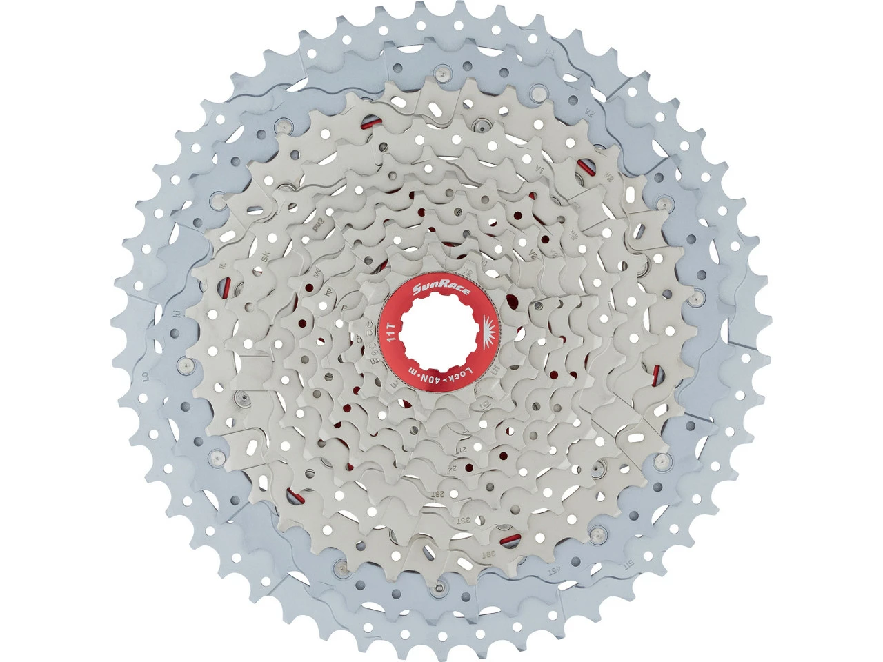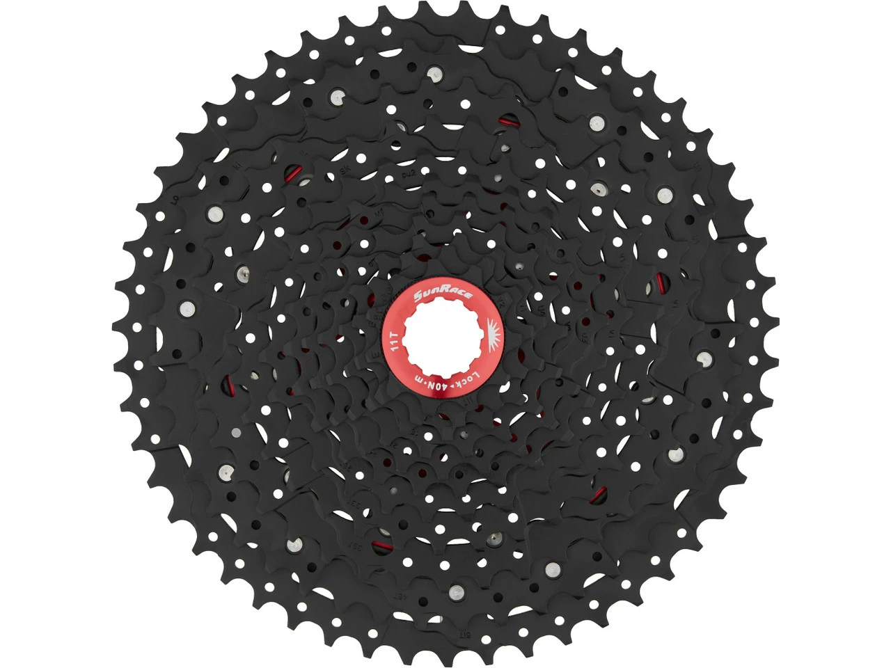 Die SunRace CSMX80 ist eine 11-fach-Kassette mit einer breiten Abstufung von 11 bis 51 Zähnen, die für den ambitionierten MTB-Einsatz konzipiert wurde. Sie überzeugt mit akkuraten und zuverlässigen Schaltvorgängen selbst unter Last. Die zwei größten Ritzel bestehen aus Aluminium, die restlichen aus Stahl. Mithilfe der SunRace-typischen Perforierung wird Gewicht eingespart.