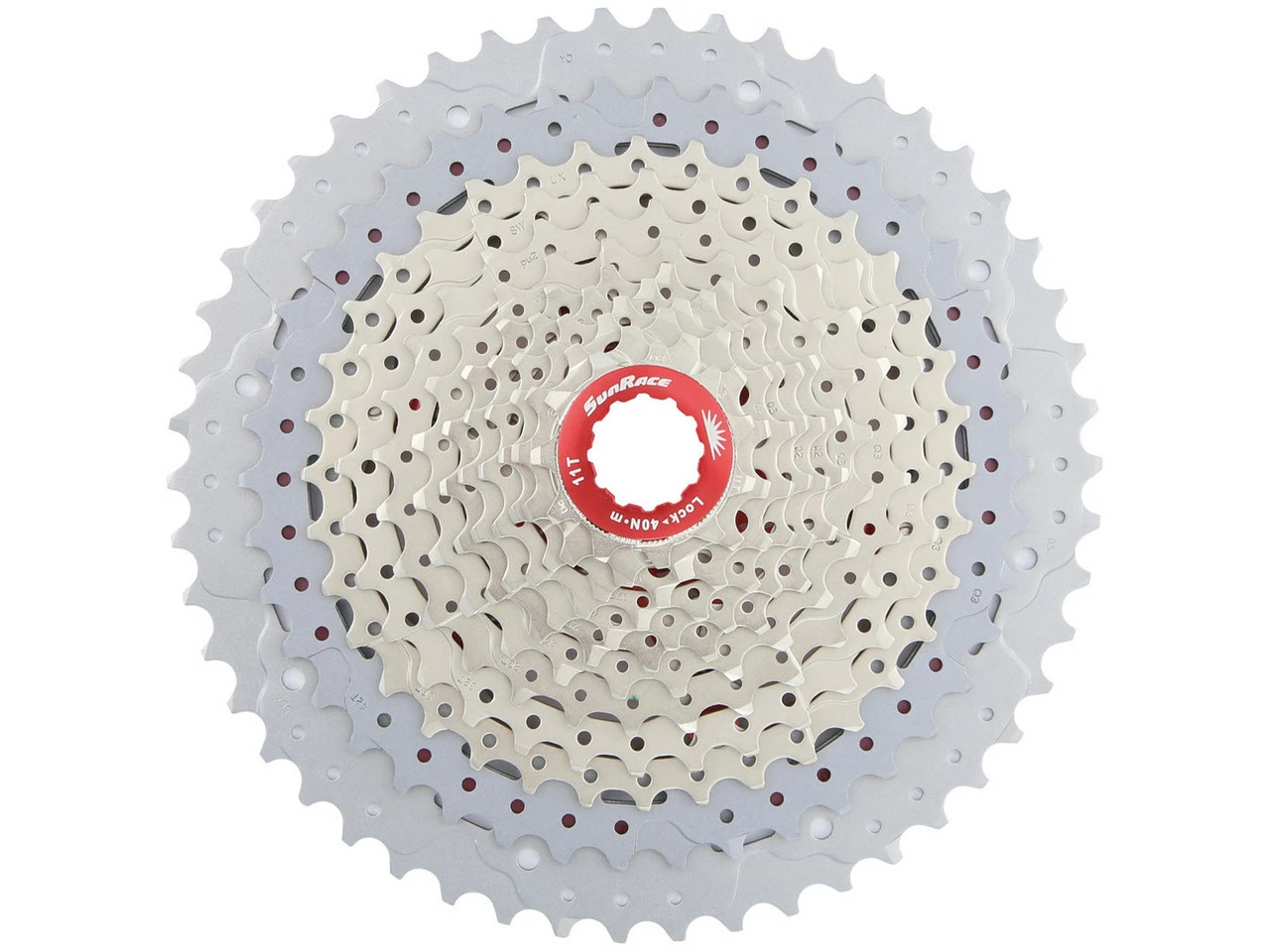 Verwende die SunRace CSMZ90 Kassette, wenn Du einen Laufradsatz mit Shimano MTB Freilauf und einen SRAM 12-fach Antrieb kombinieren willst. Mit 10 Stahl- und 2 Aluminium-Ritzeln überzeugt sie durch ihre breite Abstufung von 11-50 Zähnen. Die CSMZ90 wurde mit der Fluid Drive Plus™ Technologie für saubere und zuverlässige Schaltvorgänge ausgestattet und zur Gewichtsersparnis mit zahlreichen Löchern versehen. Die rot eloxierten Spider und der SunRace Lockring sorgen für farbige Akzente.