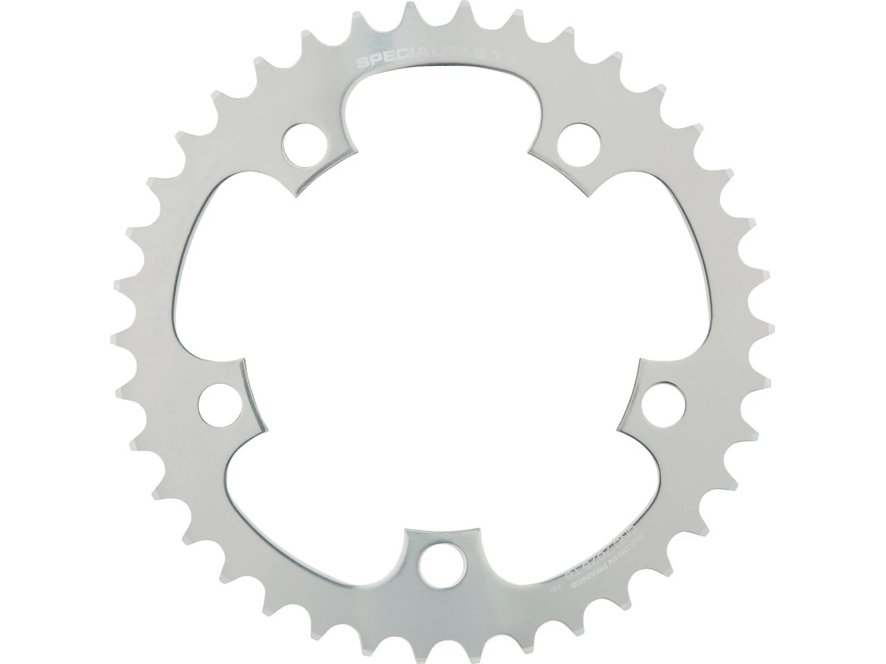 Spezifikationen:Einsatzbereich:RoadBefestigung:110 mm Lochkreis, 5-ArmZähne:33 Z, 34 Z, 36 Z, 38 Z, 39 Z, 40 Z, 42 ZSchaltstufen:2×9-fach, 3×9-fach, 2×10-fach, 3×10-fach, 2×11-fach, 3×11-fachTechnische Daten:Material:Aluminium (7075-T6)Kompatibilität:für Road Compact Kurbeln (110 mm Lochkreis)auch für MTB Kurbeln vor 1993 mit 110 mm Lochkreis und Lochabstand 65 mm (alter Shimano MTB-Standard)Position: innenFeatures:Lochabstand 65 mmschwarz oder silbern eloxiertdesignt und hergestellt in Frankreich